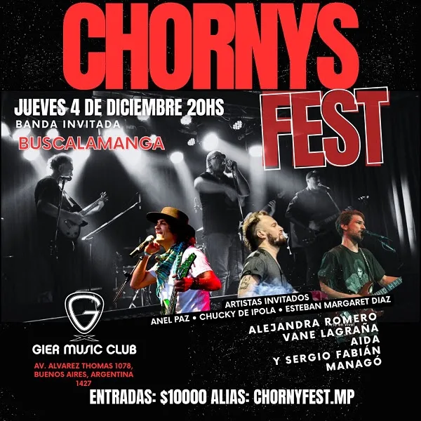 Entradas a $10.000, alias: CHORNYFEST.MP